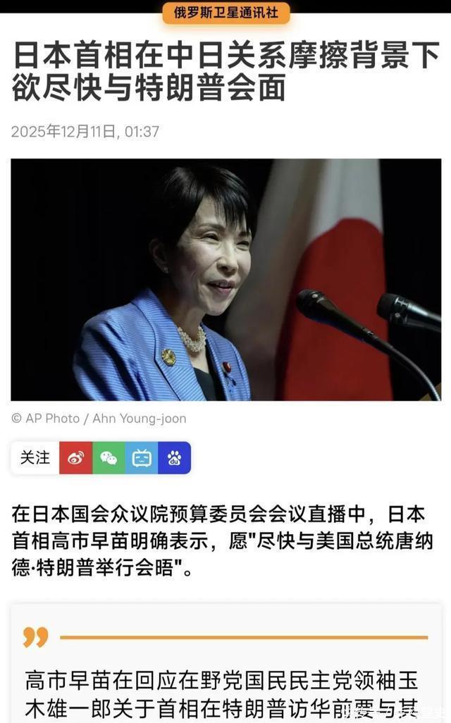 高市现在有点慌,想拉美国站台,好显得自己不是一个人在硬扛。 可问题是,特朗普那边根本没接招。